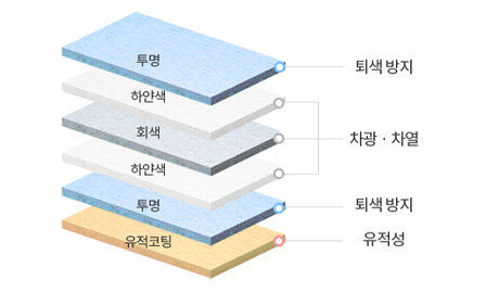 - 6층 구조로 차광 · 차열 기능 및 뛰어난 내구성 실현